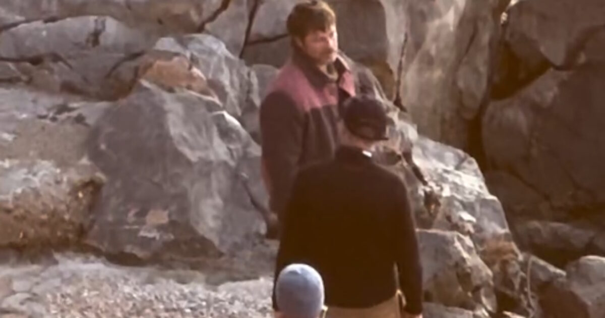 Όπως φαίνεται από τα πλάνα η σκηνή που πρόκειται να γυριστεί είναι σε κάποιο απόκρημνο σημείο του νησιού και τα μέλη της παραγωγής βρίσκονταν εκεί από νωρίς περιμένοντας τον ηθοποιό.