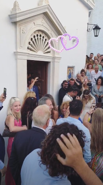 Η νύφη έφτασε στην εκκλησία με ένα τρίκυκλο μηχανάκι το οποίο οδηγούσε ο Ντάνος, την ώρα που ο Γιώργος Χρανιώτης την περίμενε στην εκκλησία για να της δώσει ένα γλυκό φιλί, όπως αποδείχτηκε αργότερα.