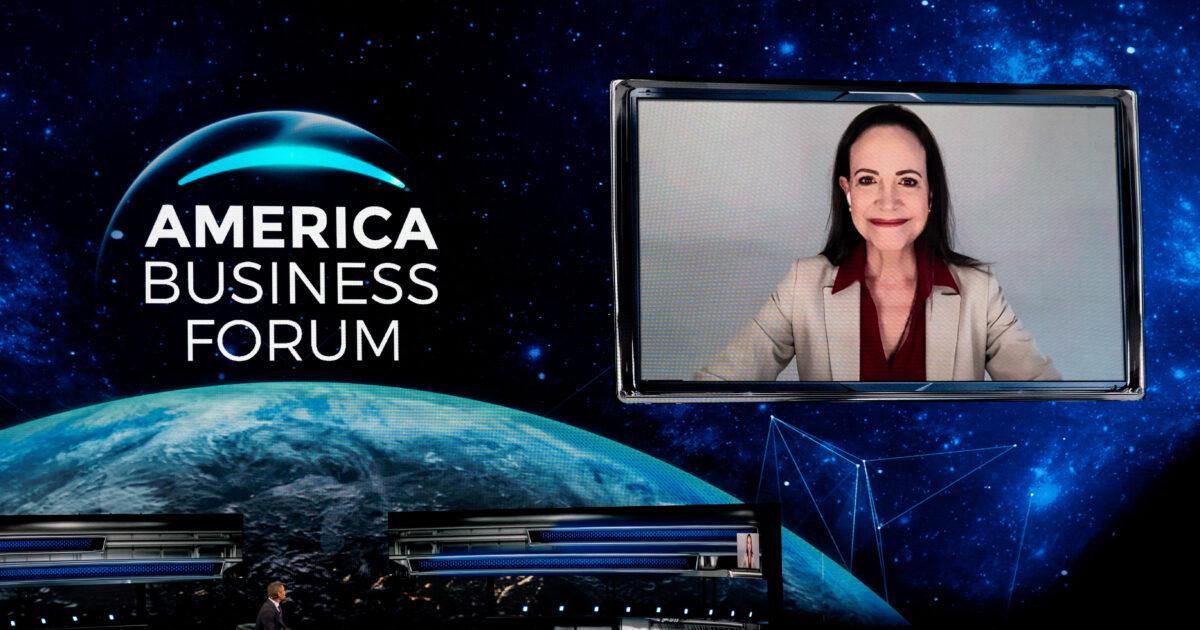 Η Μαρία Κορίνα Ματσάδο καταγγέλλει ότι ο Νικολάς Μαδούρο «έκλεψε» τις εκλογές του 2024, όταν εξελέγη στο κορυφαίο αξίωμα της Βενεζουέλας για τρίτη συναπτή θητεία έξι ετών.