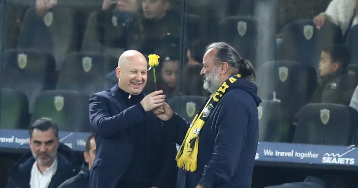 Ο Μάρκο Νίκολιτς δέχθηκε τα συγχαρητήρια του ιδιοκτήτη της ΠΑΕ ΑΕΚ, αλλά και ένα κίτρινο τριαντάφυλλο, το οποίο και “έκλεψε” τις εντυπώσεις στην Allwyn Arena.