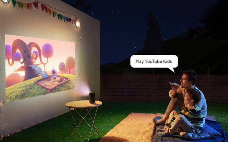 Η συσκευούλα χαρίζει HD εικόνα (720p) σε χορταστικές διαστάσεις 100 ιντσών και έχει ενσωματωμένο ηχείο για να μην μπλέκεις με Bluetooth και εξωτερικά ηχεία. Ακόμα και την υπηρεσία Android TV διαθέτει, ώστε να μη χρειάζεσαι HDMI καλώδια ή να στριμάρεις από το κινητό σου (αν και μπορείς να τα κάνεις και τα δύο αν θέλεις).