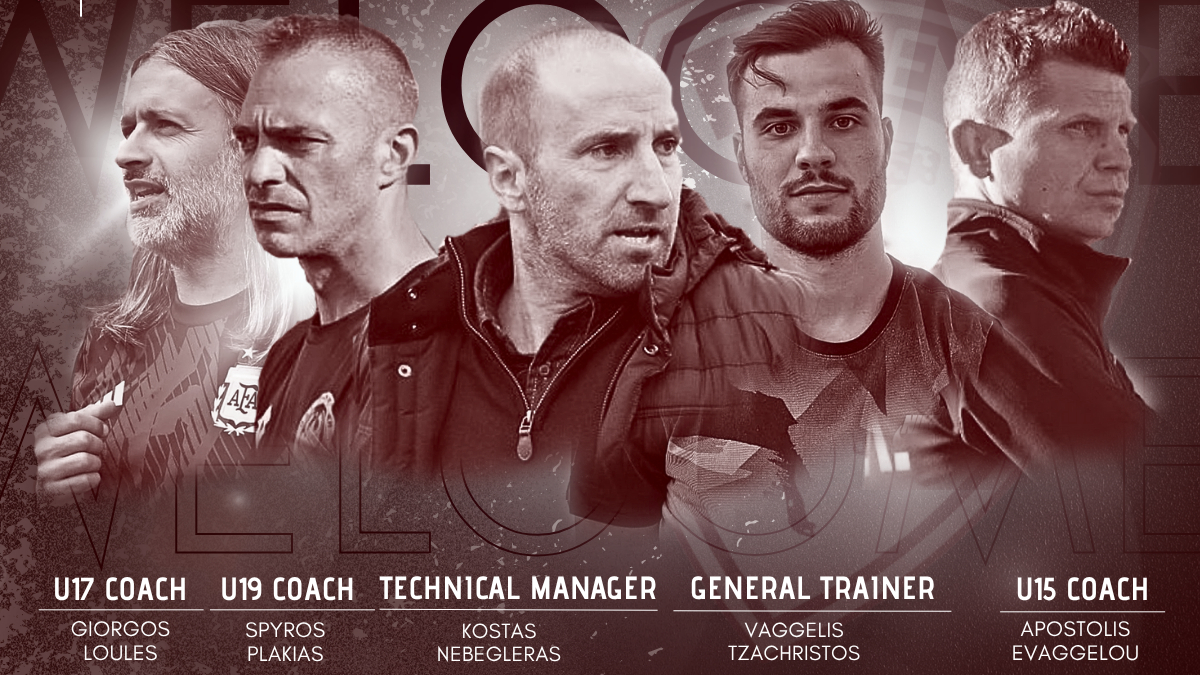 Προπονητής της Κ19 αναλαμβάνει ο Σπύρος Πλακιάς, της Κ17 ο Γιώργος Λουλές και της Κ15 ο Αποστόλης Ευαγγέλου. Γυμναστής όλων των τμημάτων θα είναι ο Βαγγέλης Τζαχρήστος, ενώ στο ρόλο του τεχνικού διευθυντή θα βρίσκεται ο Κώστας Νεμπεγλέρας.