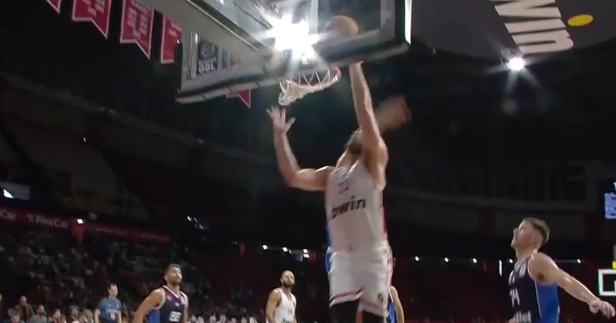 Ο Σέρβος Σέντερ είδε όμως την μπάλα να βγαίνει και εκνευρίστηκε, χτυπώντας με το χέρι του -και με δύναμη- τη βάση της μπασκέτας.