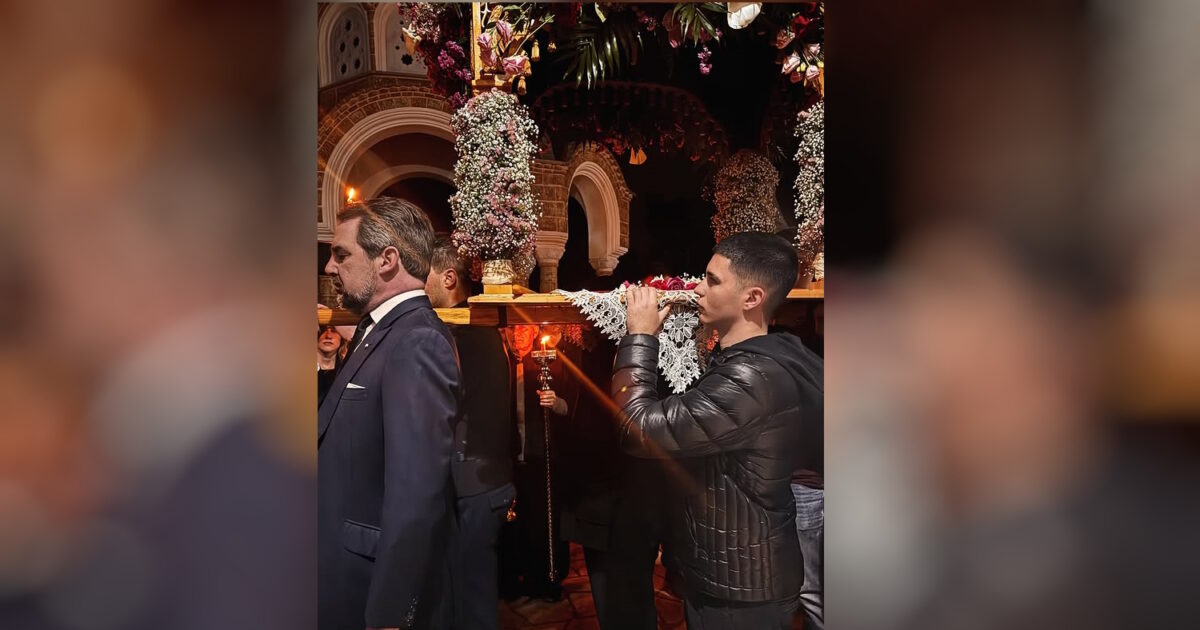 Στιγμές συγκίνησης βίωσε τη Μεγάλη Παρασκευή (10.04.2026) ο Νικόλαος Ντε Γκρες στην Εκάλη, όπου κράτησε τον Επιτάφιο σε κλίμα βαθιάς κατάνυξης. Δίπλα του είχε τον Γιώργο Τσαλίκη με τους γιους του τραγουδιστή.