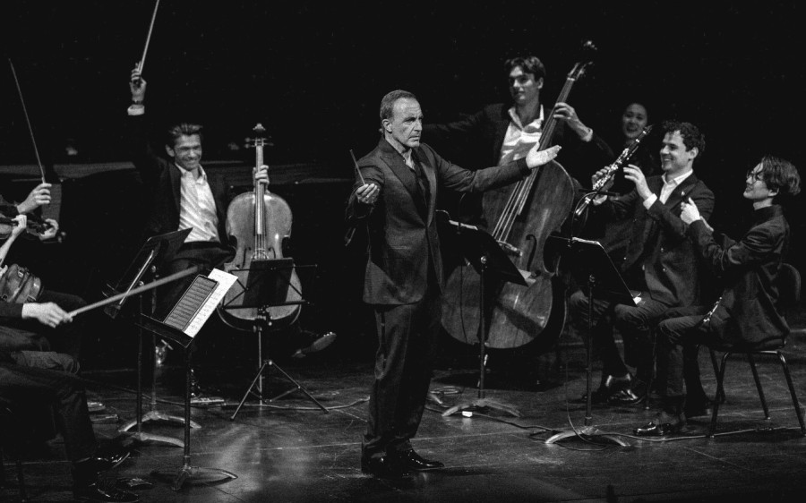 Στο Carnaval des animauxτου Camille Saint-Saëns, μια παράσταση που από μόνη της έχει κάτι παιχνιδιάρικο αλλά και βαθιά συγκινητικό, ο Αλιάγας δεν έμεινε στον ρόλο του αφηγητή. Μπήκε μέσα στη μουσική. Κυριολεκτικά. Πήρε θέση απέναντι στην ορχήστρα και άρχισε να τη «οδηγεί», όχι σαν επαγγελματίας μαέστρος που έχει μάθει απ’ έξω τις κινήσεις, αλλά σαν κάποιος που νιώθει αυτό που συμβαίνει εκείνη τη στιγμή.