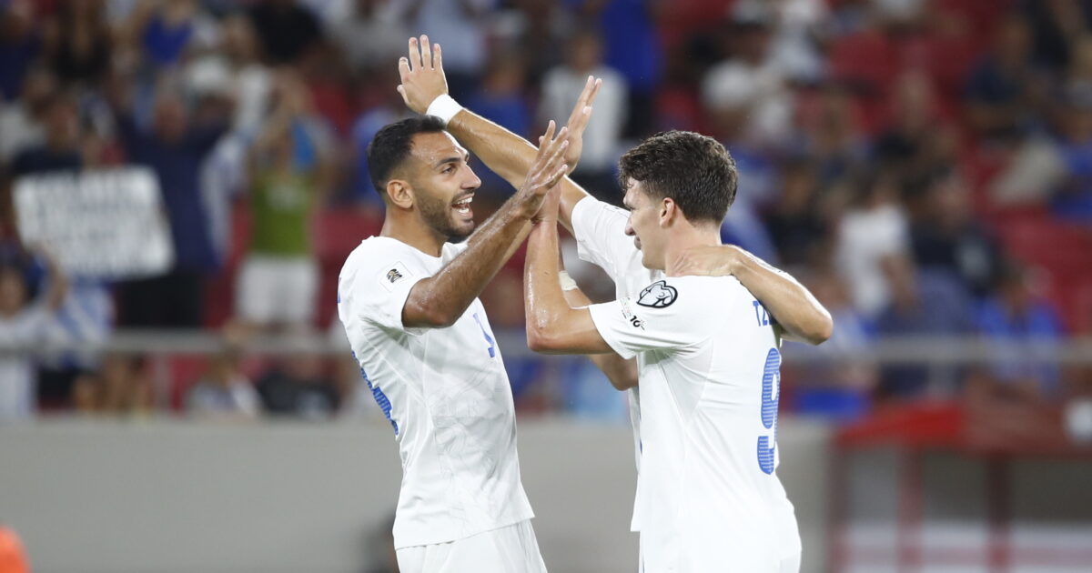 Ο Τζόλης με τον Παυλίδη με τη φανέλα της Εθνικής Ελλάδας/ (ΣΤΕΛΙΟΣ ΣΤΕΦΑΝΟΥ / EUROKINISSI)