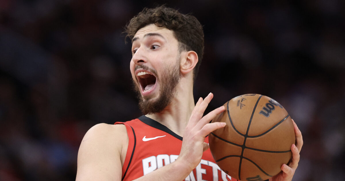 Ο Σενγκούν με τη φανέλα των Ρόκετς/ Mandatory Credit: Thomas Shea-Imagn Images