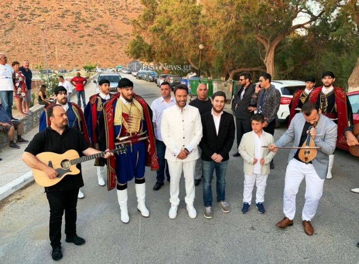 Ο γαμπρός πήγε στην εκκλησιά περπατώντας, συνοδευόμενος από κρητικούς καλλιτέχνες και βρακοφόρους.