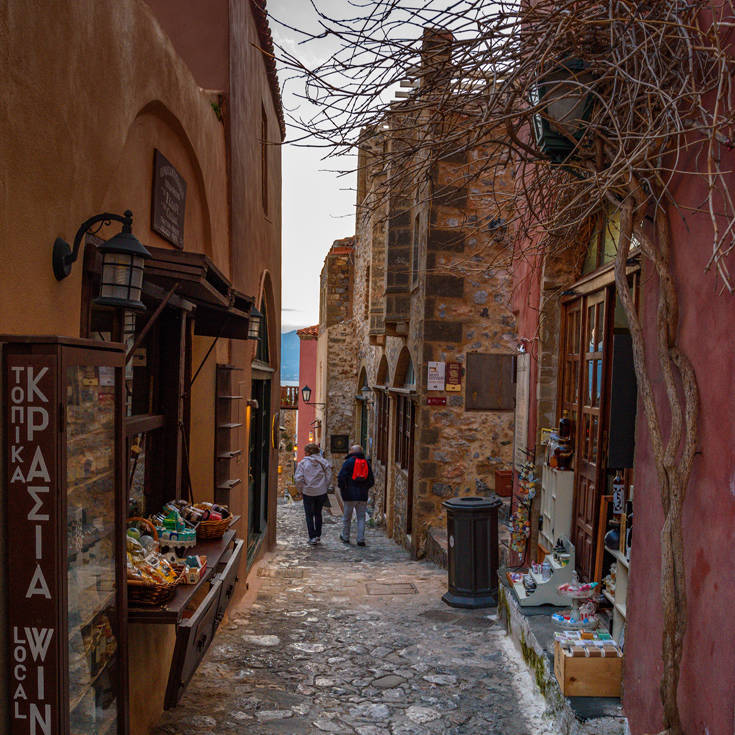 Πήρε το όνομά της από τις λέξεις «μόνη» και «έμβαση», τη μία και μοναδική είσοδό της, δηλαδή. Και είναι μια από τις πιο προβεβλημένες πόλεις της Πελοποννήσου, στο νομό Λακωνίας. Το μεσαιωνικό της φρούριο πάνω στο βράχο είναι η πιο χαρακτηριστική εικόνα της, ενώ διασώζονται έως σήμερα κάποιες αμυντικές κατασκευές και αρκετές βυζαντινές εκκλησίες.