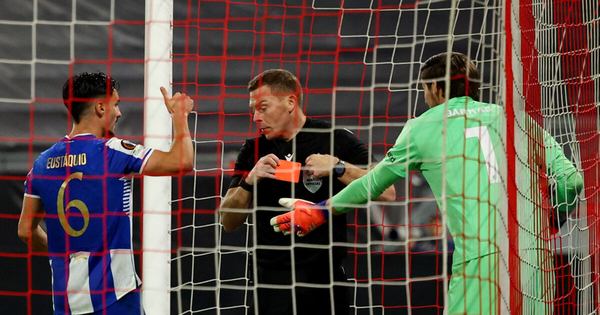 Ο Βασίλης Μπάρκας στο παιχνίδι της Ουτρέχτης με την Πόρτο αποβλήθηκε με απευθείας κόκκινη κάρτα για αψιμαχία του με αντίπαλο τη στιγμή που δέχτηκε το γκολ της ισοφάρισης.