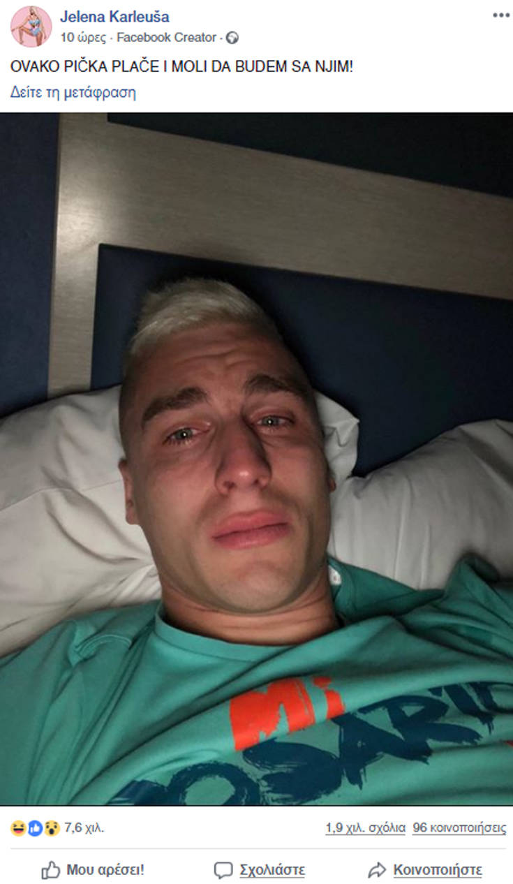 Μάλιστα, η Γελένα ανέβασε και μια άλλη φωτογραφία, στην οποία ο Βράνιες εμφανίζεται δακρυσμένος. «Έτσι κλαίει το μ… και παρακαλάει να είμαι μαζί του», ήταν η λεζάντα της εικόνας.