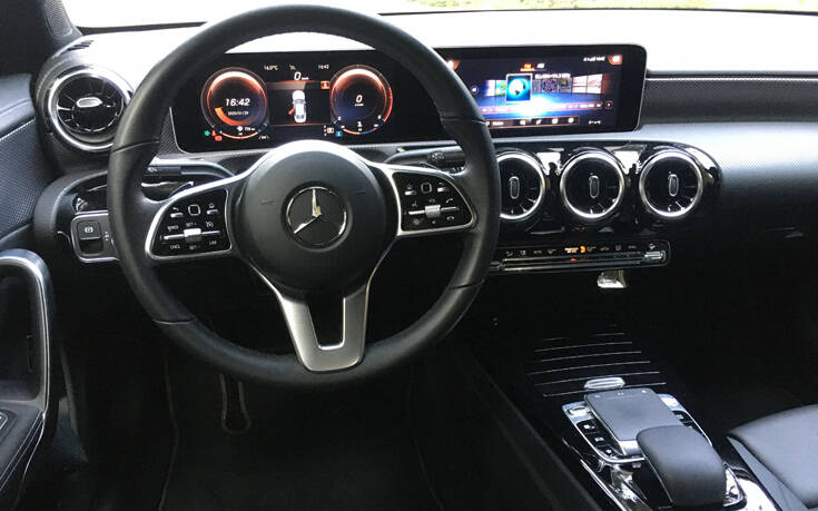 Στο κάθισμα του οδηγού της CLA, αισθάνεσαι σαν πιλότος μαχητικού, γεγονός που οφείλεται κυρίως στην σχεδίαση του ταμπλό και την διπλή οθόνη πολυμέσων.
