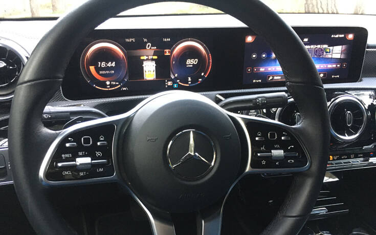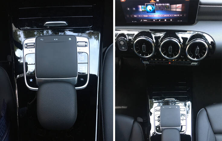 Στο ίδιο μοτίβο και τα χειριστήρια των διαφόρων λειτουργιών με επιφάνεια αφής στην κεντρική κονσόλα, αλλά και στο τιμόνι, στοιχείο που μερικές φορές προβληματίζει τον οδηγό, αφού άθελά του πολλές φορές ενεργοποιεί λειτουργίες ή κάνει ανεπιθύμητες αλλαγές. Το σύστημα πολυμέσων MBUX, είναι αναβαθμισμένο εδώ, αναγνωρίζοντας χειρονομίες, επιτρέποντας ακόμα και την προσαρμογή του περιεχομένου της οθόνης.