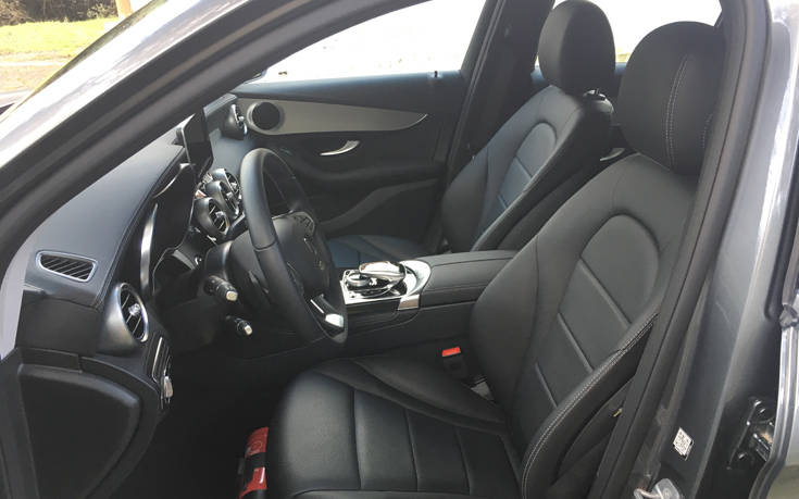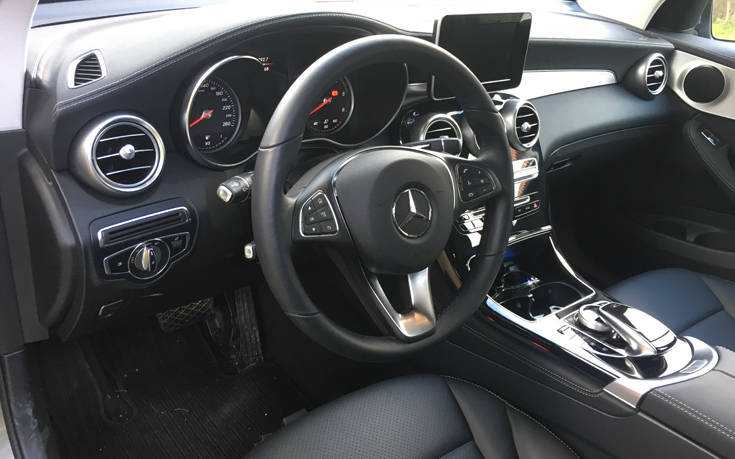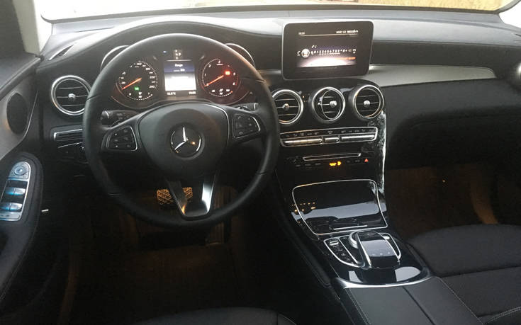 Στο εσωτερικό η άριστη ποιότητα υλικών με την αψεγάδιαστη συναρμολόγηση είναι αναμενόμενη, ενώ η σχεδίαση ξεφεύγει κατά πολύ από τα συντηρητικά πρότυπα του GLK, όντας μοντέρνα και ευχάριστη. Ταμπλό, πόρτες και καθίσματα έχουν δερμάτινη επένδυση με προσεγμένες διπλές ραφές, ενώ μεταλλικές ασημί φάσες, σπάνε την μονοτονία του μαύρου δέρματος.