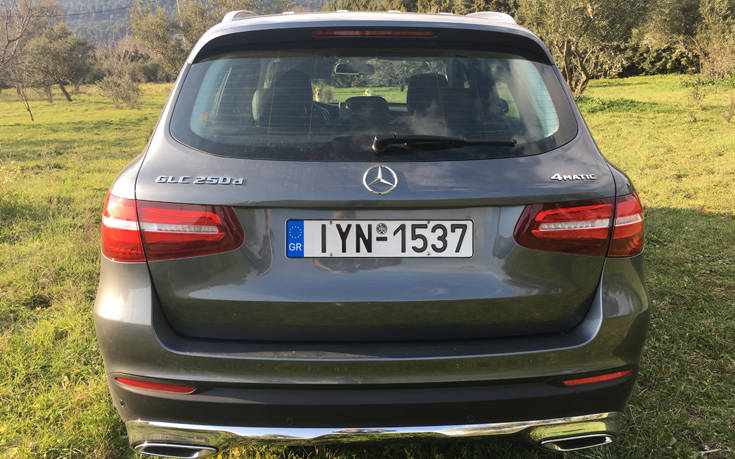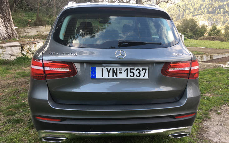 Το εντυπωσιακό GLC της δοκιμής μας είναι η πιο πρόσφατη έκδοση και παρά τον μουντό χρωματισμό του δεν περνάει σχεδόν ποτέ απαρατήρητο. Με το αστέρι να δεσπόζει στην μάσκα με τις διπλές γρίλιες, τα αλουμινένια διακοσμητικά και τις δυο εντυπωσιακές μπούκες της εξάτμισης, δείχνει και είναι «απειλητικό» τόσο εντός, όσο και εκτός ασφαλτόδρομων.