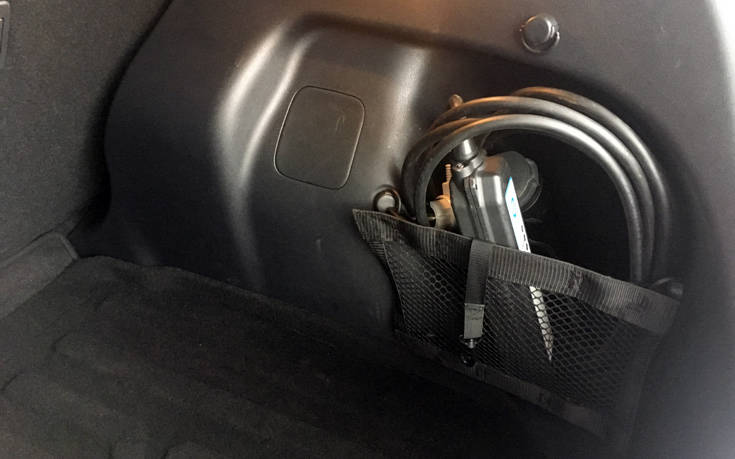 Κοιτάζοντας πιο προσεκτικά, δεν βλέπεις πουθενά την γνώριμη θύρα ανεφοδιασμού ή φόρτισης, που τελικά είναι σαν πόρτα μικρού πορτ μπαγκάζ, βρίσκεται μπροστά από το κέντρο του καπό, μοιάζει σαν σχεδιαστική πινελιά, αλλά διαβάζοντας το «χοντρό» βιβλίο οδηγιών χρήσης, μαθαίνεις πως (όταν καταφέρεις να το ανοίξεις, διαβάζοντας πιο προσεκτικά) κάτω από αυτό, βρίσκονται δύο πρίζες, μία για απλή και μια για ταχεία φόρτιση των μπαταριών ιόντων λιθίου χωρητικότητας 40 kWh.