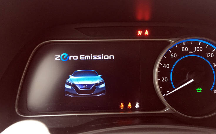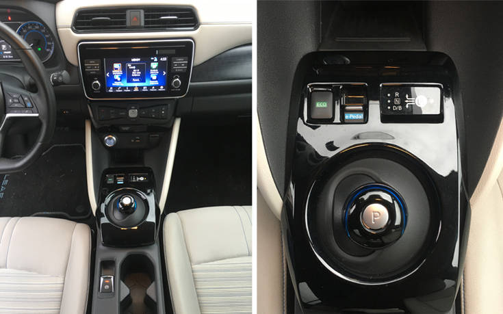 Όμως κανένα πρόβλημα, καθώς η τεχνολογία έχει τοποθετήσει στο Leaf, το σύστημα e-Pedal, που ενεργοποιείται μέσω ενός διακόπτη στη βάση της κονσόλας και επιτρέπει στον οδηγό να χρησιμοποιεί μόνο το δεξί πεντάλ για γκάζι-φρένο. Αφήνοντας λίγο το γκάζι το Leaf επιβραδύνει, ενώ αφήνοντάς το εντελώς, ακινητοποιείται ενεργοποιώντας ταυτόχρονα τα φώτα των φρένων για να ενημερώσει τους οδηγούς που ακολουθούν.