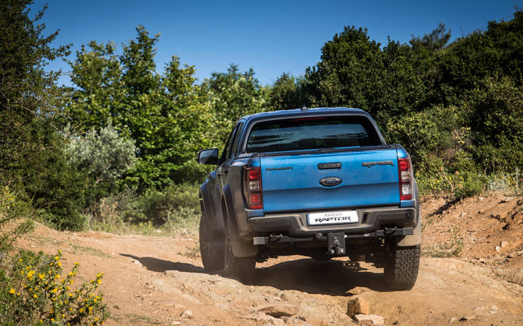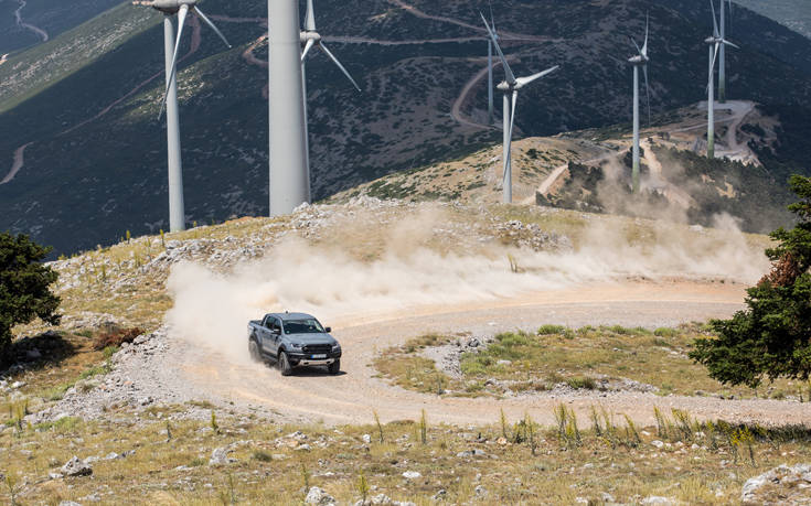 Η αποκάλυψη όμως έρχεται, όταν πίσω από τον χώρο φόρτωσης, πυκνώνουν τα σύννεφα της σκόνης. Εκεί το Ranger Raptor αποκαλύπτει το αληθινό του πρόσωπο, το οποίο αν εμπιστευτεί ο οδηγός, συντελεί ούτως ώστε να πυκνώσουν και άλλο τα σύννεφα της σκόνης που καλύπτουν το εντυπωσιακό pick-up από …αδιάκριτα μάτια. Η ροπή του κινητήρα σπρώχνει τους 2,5 τόνους μπροστά, η ανάρτηση ισοπεδώνει τις όποιες ανωμαλίες του δρόμου και το αμάξωμα παραμένει σχεδόν σε οριζόντια θέση, προστατεύοντας τους επιβάτες και (σε συνδυασμό με το άριστο σύστημα κλιματισμού) διατηρώντας τους «ατσαλάκωτους», ακόμα και μετά από πολύωρη διαδρομή.