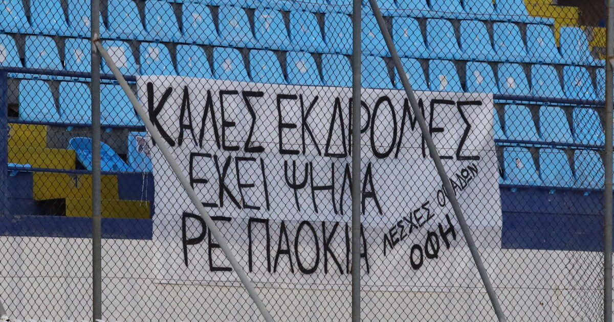 Και οι οπαδοί των γηπεδούχων σήκωσαν πανό στις κερδίδες του γηπέδου, γράφοντας «τα πέταλα πενθούν».