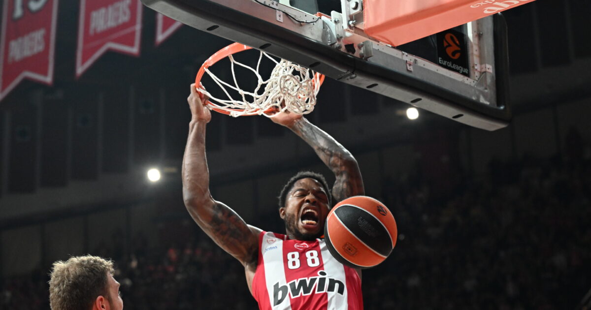 Ο Τζόουνς καρφώνει κόντρα στην Μπαρτσελόνα (ΑΝΤΩΝΗΣ ΝΙΚΟΛΟΠΟΥΛΟΣ / EUROKINISSI)