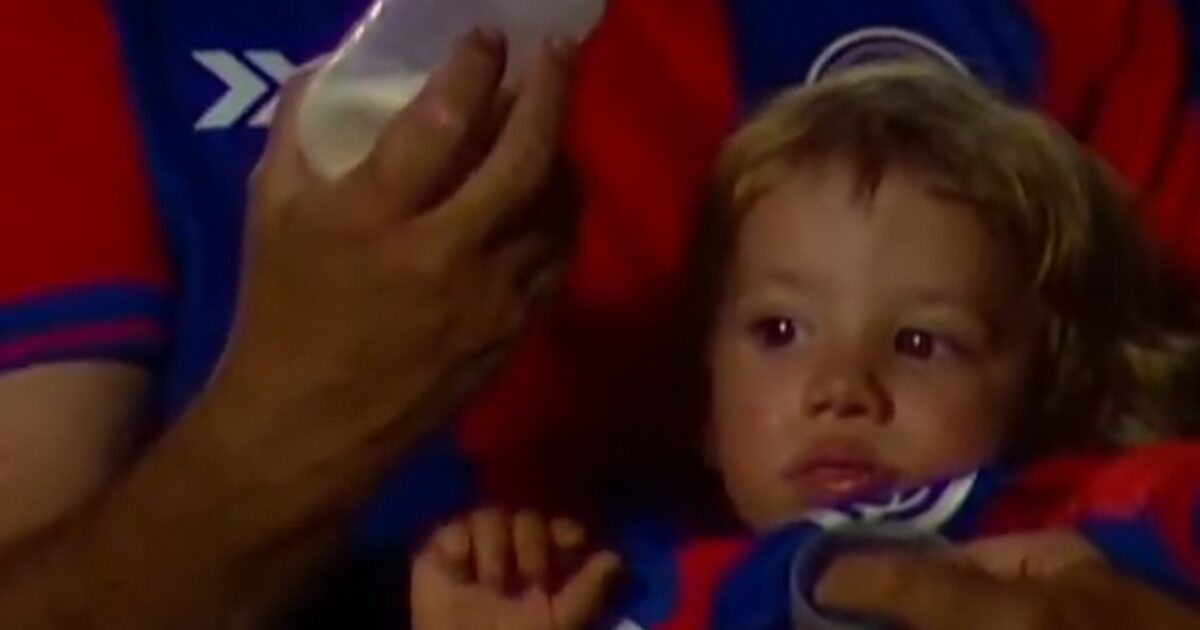 Απίστευτη εικόνα από γήπεδο της Αργεντινής, με έναν οπαδό της Σάν Λορέντζο να έχει εμφανιστεί με ένα μικρό παιδί στην κερκίδα, αλλά να μην καταφέρνει να το ταΐσει, παρακολουθώντας το ματς.