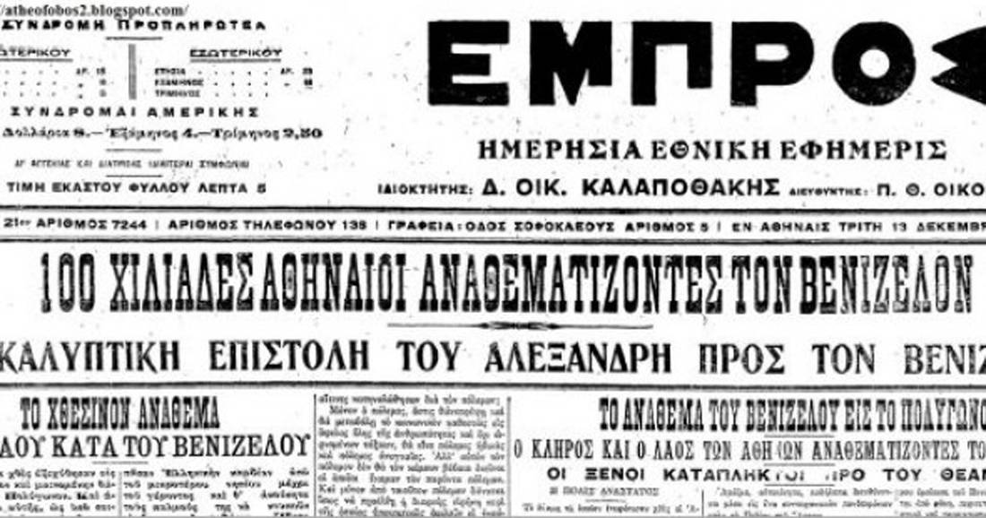 Η μεγάλη αντιβενιζελική διαδήλωση, το ανάθεμα και η διαταγή του Βενιζέλου