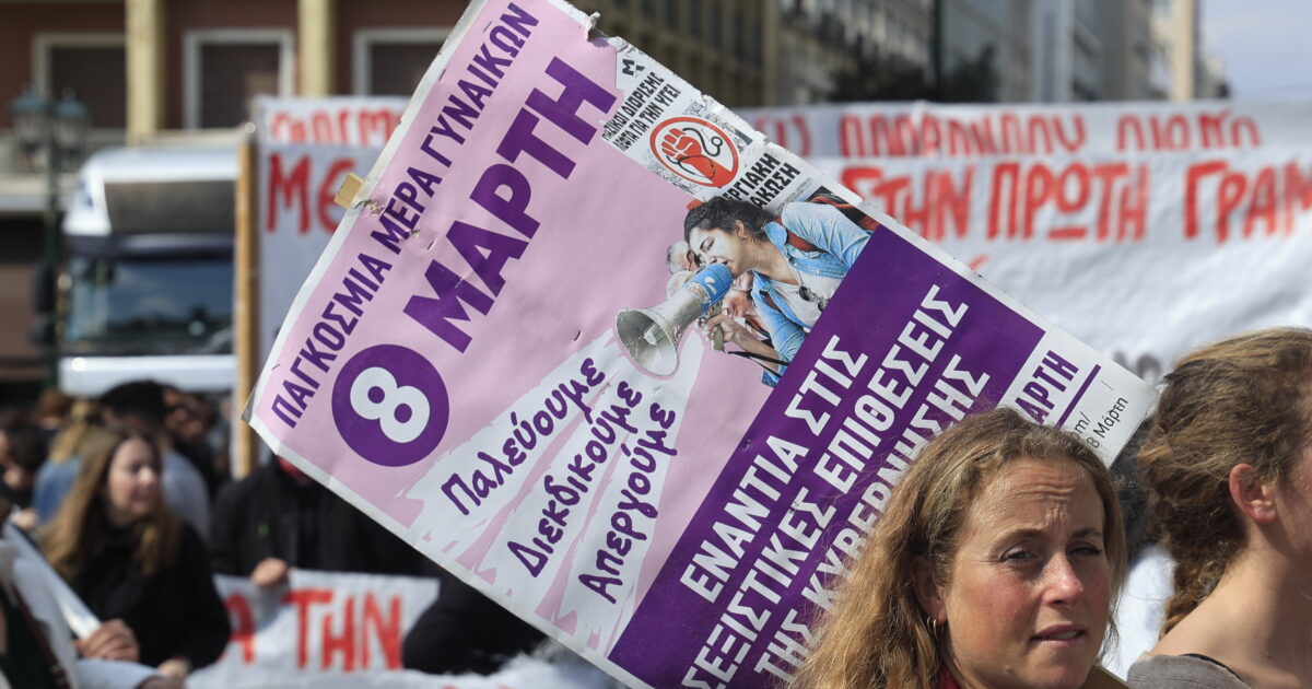 Συγκέντρωση στην πλατεία Κλαυθμώνος και πορεία προς το Σύνταγμα, από την ΑΔΕΔΥ, για την Παγκόσμια Ημέρα της Γυναίκας, Κυριακή 8 Μαρτίου 2026. (ΓΙΩΡΓΟΣ ΚΟΝΤΑΡΙΝΗΣ/EUROKINISSI)Συγκέντρωση στην πλατεία Κλαυθμώνος και πορεία προς το Σύνταγμα, από την ΑΔΕΔΥ, για την Παγκόσμια Ημέρα της Γυναίκας, Κυριακή 8 Μαρτίου 2026. (ΓΙΩΡΓΟΣ ΚΟΝΤΑΡΙΝΗΣ/EUROKINISSI)