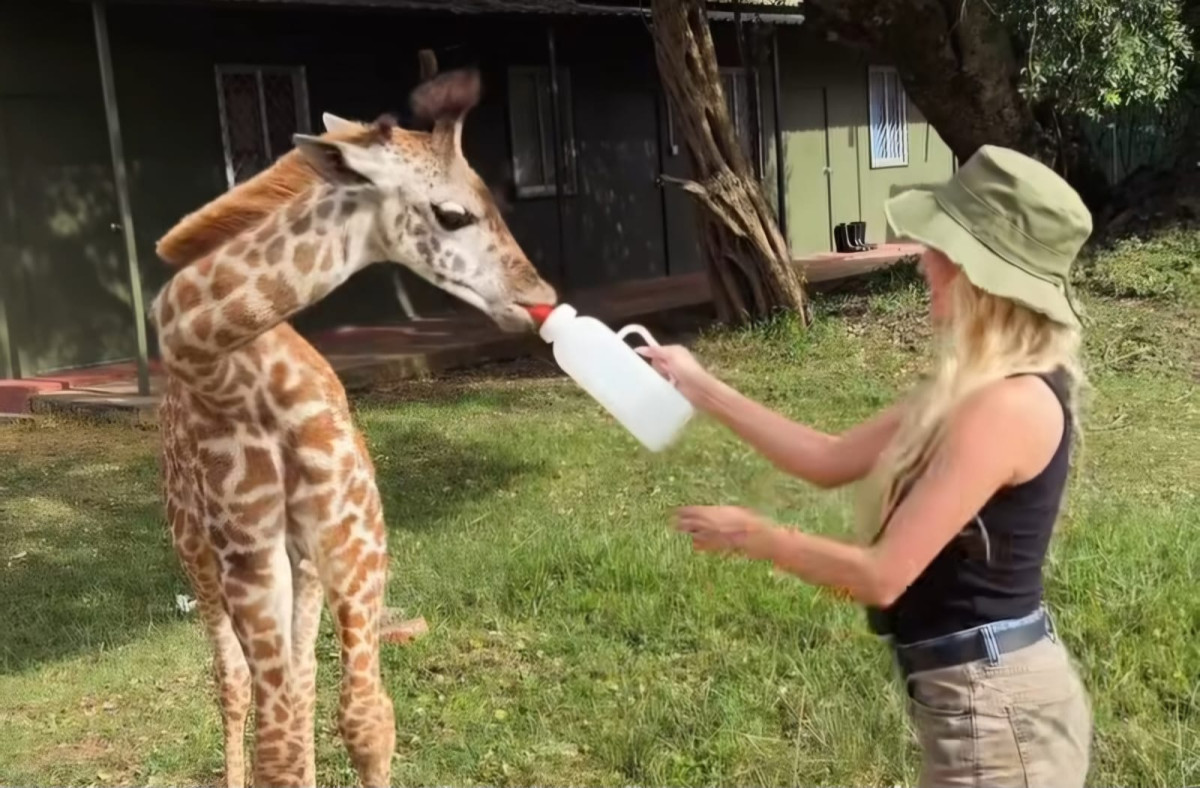 Μια από αυτές είναι σίγουρα το οτι της έδωσαν ένα μεγάλο “μπιμπερό” για να ταϊσει η ίδια ένα μωρό καμηλοπάρδαλη με τα χέρια της! Και φυσικά ξετρελάθηκε με το πλασματάκι που ρουφούσε αχόρταγα το γάλα του όπως κάθε μωρό, παρά το μέγεθός του.