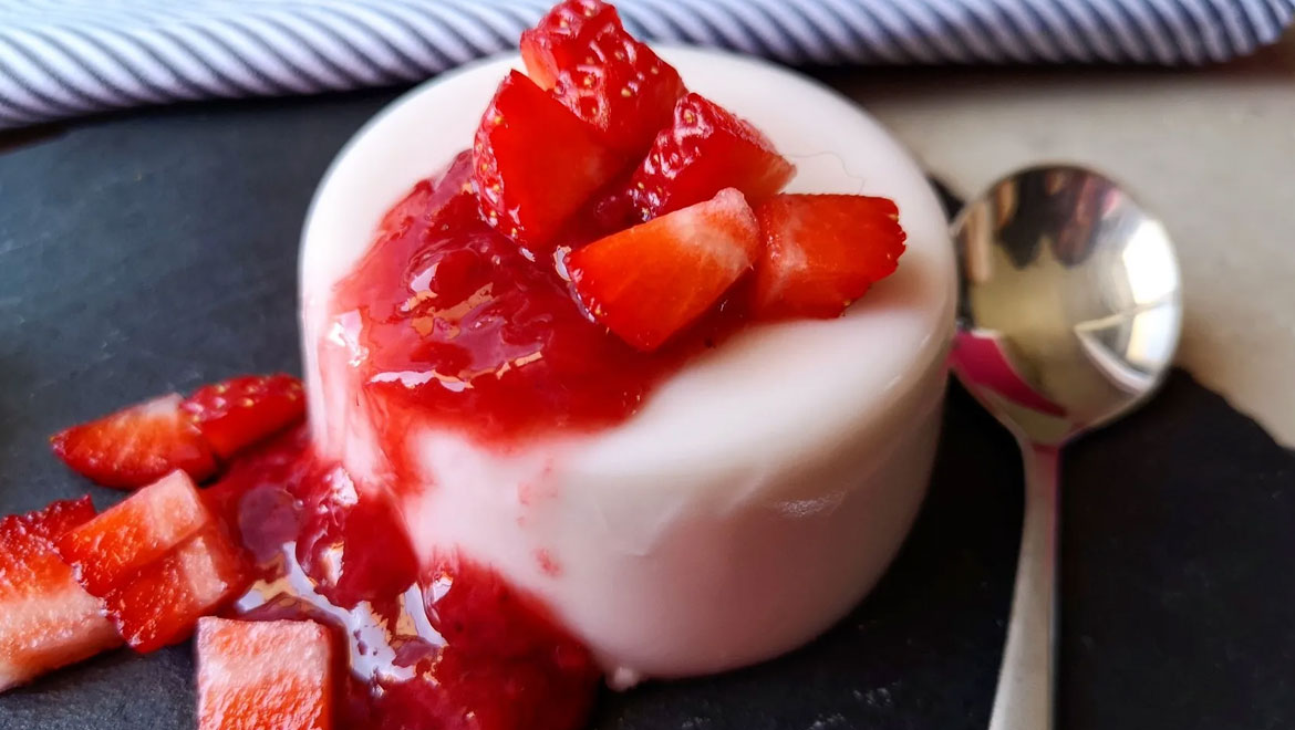 Η πανακακότα είναι ελαφριά, δροσερή και κατάλληλη για μετά το μεσημεριανό. Σήμερα θα τη φτιάξουμε με φράουλα!
