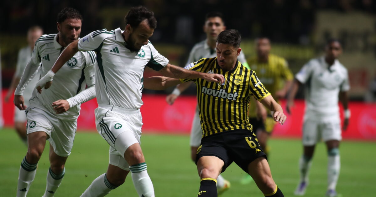 Ο Τσιριβέγια με τον Γαλανόπουλο σε παιχνίδι Άρης – Παναθηναϊκός/ (ΒΑΣΙΛΗΣ ΒΕΡΒΕΡΙΔΗΣ / ΜΟΤΙΟΝ ΤΕΑΜ)