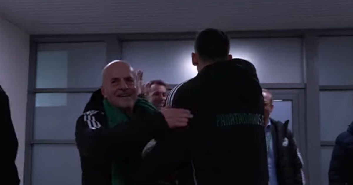 Αρχικά, τον Τάσο Μπακασέτα υποδέχθηκαν στα αποδυτήρια του ΟΑΚΑ ο αντιπρόεδρος της ΠΑΕ Τάκης Φύσσας και το στέλεχος του Παναθηναϊκού, ο Γρηγόρης Παπαβασιλείου, με τον δεύτερο να τον πειράζει και να του λέει ότι θα του πάρει τη μπάλα.