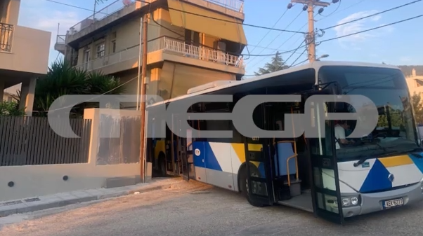 Λεωφορείο έχει «καρφωθεί» σε μπαλκόνι πολυκατοικίας στου Παπάγου. Προκάλεσε μεγάλες ζημιές στο ισόγειο, την αυλή, το μπαλκόνι του πρώτου ορόφου αλλά και σε σταθμευμένο αυτοκίνητο.