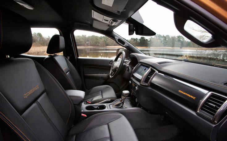 Το άνετο εσωτερικό, το οποίο παραπέμπει σε επιβατικό αυτοκίνητο, προσφέρεται τώρα σε περιβάλλον Ebony Black με τις βαμμένες επιφάνειες να αποκτούν μεγαλύτερη λάμψη και βάθος. Τα μοντέλα που διαθέτουν το αυτόματο κιβώτιο των 10 σχέσεων διαθέτουν επίσης έναν υψηλής ποιότητας επιλογέα. Το πολυτελές Ranger Limited προσφέρει μαύρα, δερμάτινα καθίσματα και λανσάρει ένα αποκλειστικό σχέδιο ζαντών αλουμινίου 17”.