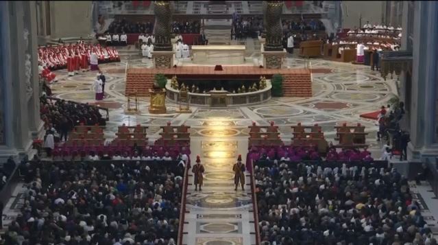 Η απουσία του Πάπα Φραγκίσκου, ο οποίος ακόμα αναρρώνει, ήταν αισθητή. Το Βατικανό ωστόσο ανακοίνωσε πως εκείνος προσωπικά έγραψε τις προσευχές για την τελετή. Είναι η δεύτερη φορά στα 12 χρόνια ως Ποντίφικας που το κάνει.