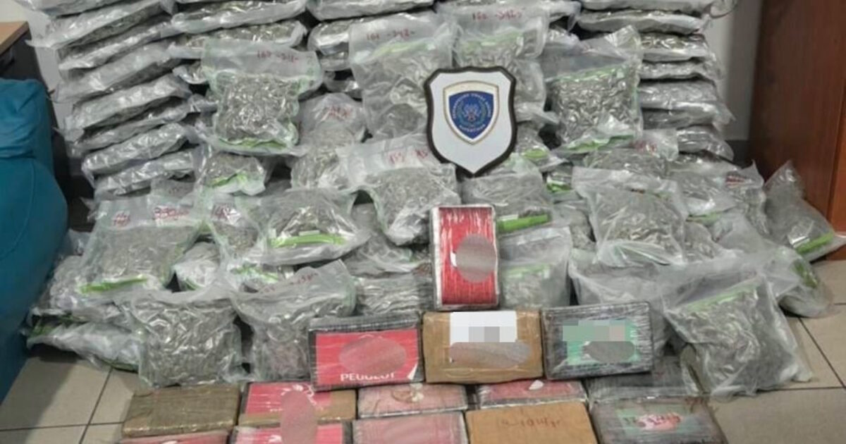 Σε έλεγχο που ακολούθησε στον χώρο του φορτίου, εντοπίστηκαν 163 πλαστικές συσκευασίες με ακατέργαστη κάνναβη υδροπονικής καλλιέργειας, συνολικού μικτού βάρους 133 κιλών και 669 γραμμαρίων, καθώς και 20 πλαστικές συσκευασίες που περιείχαν κοκαΐνη, συνολικού μικτού βάρους 21 κιλών και 942 γραμμαρίων.