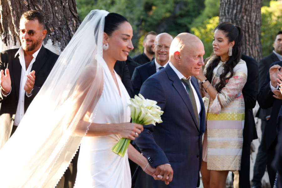 Ο γαμπρός, γιος του Γιώργου Βαρδινογιάννη και της Αγάπης Πολίτη, έλαμπε από ευτυχία στο πλευρό της αγαπημένης του, με την οποία μοιράζεται κοινή πορεία ζωής τα τελευταία δύο χρόνια.