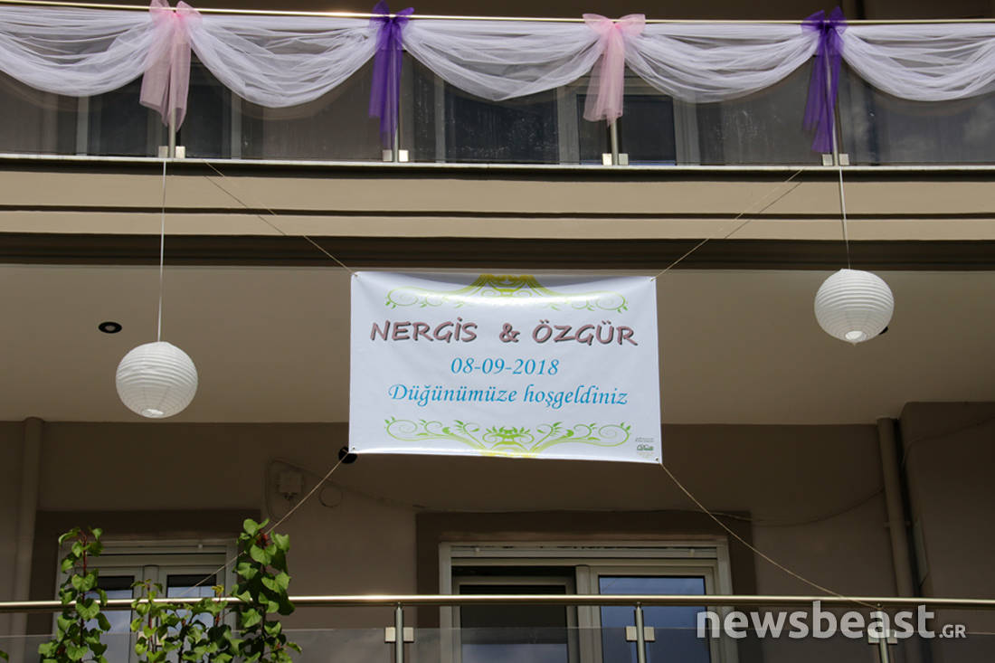 Ένα ζευγάρι Πομάκων είχε παντρευτεί. Ο αδερφός του γαμπρού και ο πατέρας του μπορεί να μην μας είπαν τα ονόματά τους αλλά κατέβηκαν από το σπίτι με χαρά να μας εξηγήσουν τι είναι αυτό το μικρό πανό που βλέπαμε κρεμασμένο στο μπαλκόνι του ζευγαριού και τι έγραφε στα τούρκικα.