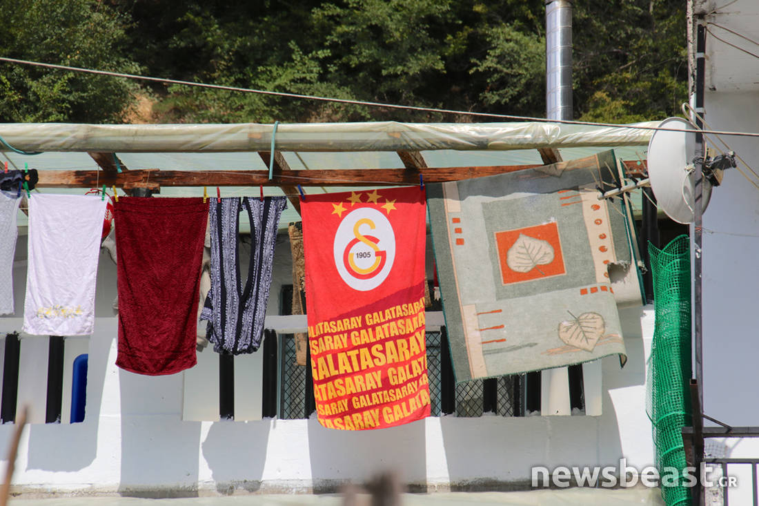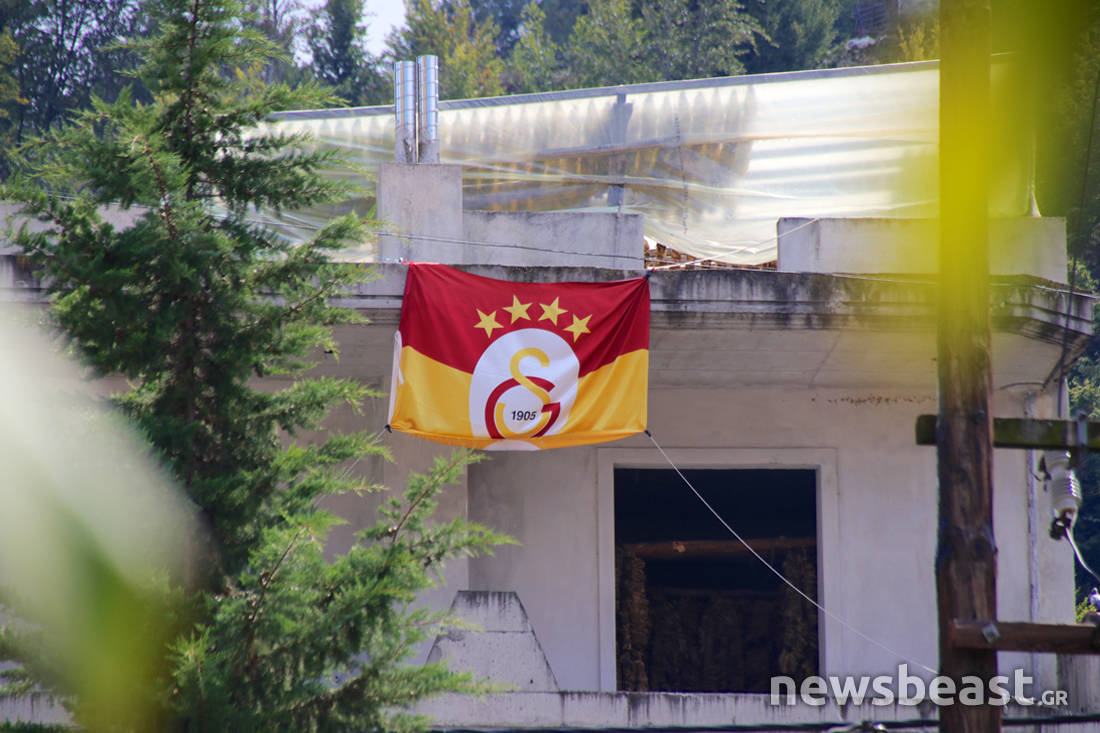 Κοιτώντας για κάποιο σύμβολο στα σπίτια ή στους δρόμους αυτό που παρατηρήσαμε ήταν δύο κρεμασμένες σημαίες της τουρκικής Γαλατάσαραϊ.