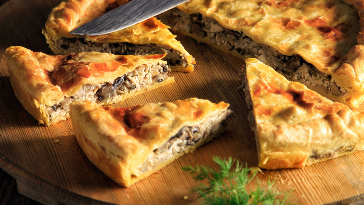 Μια πίτα με κοτόπουλο και μανιτάρια είναι η τέλεια επιλογή σνακ για το γραφείο.