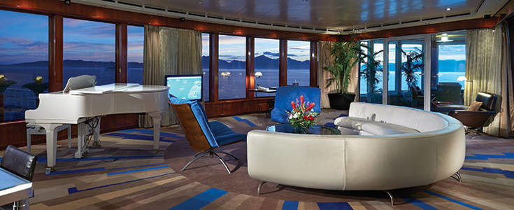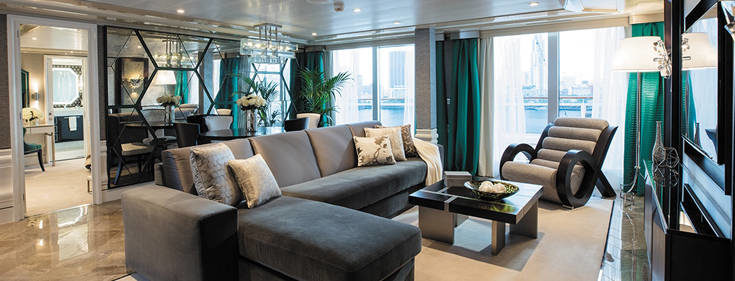 Η επιτομή της πολυτέλειας εν πλω, στο κρουαζιερόπλοιο Seven Seas Explorer της εταιρείας Regent Seven Seas Cruises, με την Regent Suite να κλέβει τις εντυπώσεις. Πρόκειται για ένα ιδιωτικό, πλωτό παλάτι 1.150 τ.μ. με ιδιωτική σάουνα, χαμάμ και χώρο περιποίησης.