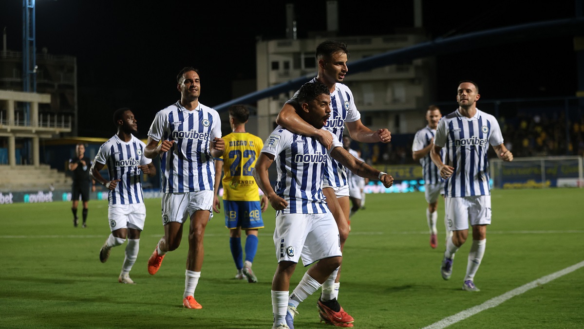 Ο Ατρόμητος μπήκε στο ματς καλύτερα και πειθαρχημένος στο πλάνο του, κλείνοντας όλους τους διαδρόμους προς την περιοχή του Χουτεσιώτη και περιμένοντας τη δική του ευκαιρία στην επίθεση. Στο 40′ παραλίγο οι γηπεδούχοι να πετύχουν αυτογκόλ, όταν ο Τσάβες επέδειξε εξαιρετικά αντανακλαστικά στην κεφαλιά του Σιέλη. Δεν μπόρεσε, όμως, να κάνει ο ίδιο ένα λεπτό αργότερα. Η κομπίνα των παικτών του Ατρομήτου στο κόρνερ εκτελέστηκε άψογα, ο Μίχορλ πάσαρε στον Παλμεζάνο και ο μεσοεπιθετικός από τη Βενεζουέλα άνοιξε το σκορ σε ένα κομβικό σημείο, καθώς έκανε με χαμηλό πλασέ το 1-0 στο 41ο λεπτό για τους φιλοξενούμενους.