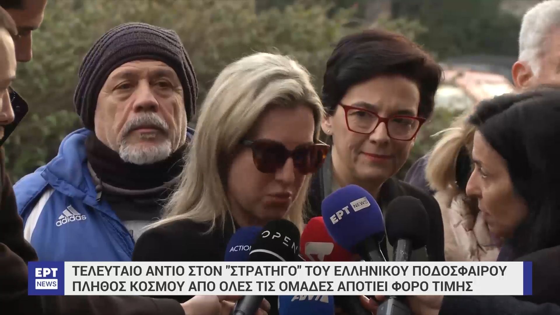 Ούσα εμφανώς συγκινημένη, η Πόπη Δομάζου απευθύνθηκε στους δημοσιογράφους που βρέθηκαν στο γήπεδο της Λεωφόρου Αλεξάνδρας. Αφότου ευχαρίστησε άπαντες για την παρουσία και τα συλλυπητήριά τους, τόνισε πως ο Μίμης Δομάζος… «είναι εδώ»