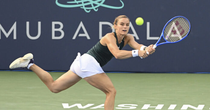 Breakthrough @EmmaRaducanu knocks out former runner-up Sakkari, 6-4, 7-5 to reach the Washington final four for the first time. #MubadalaCitiDCOpen pic.twitter.com/1Lw1VlDc67