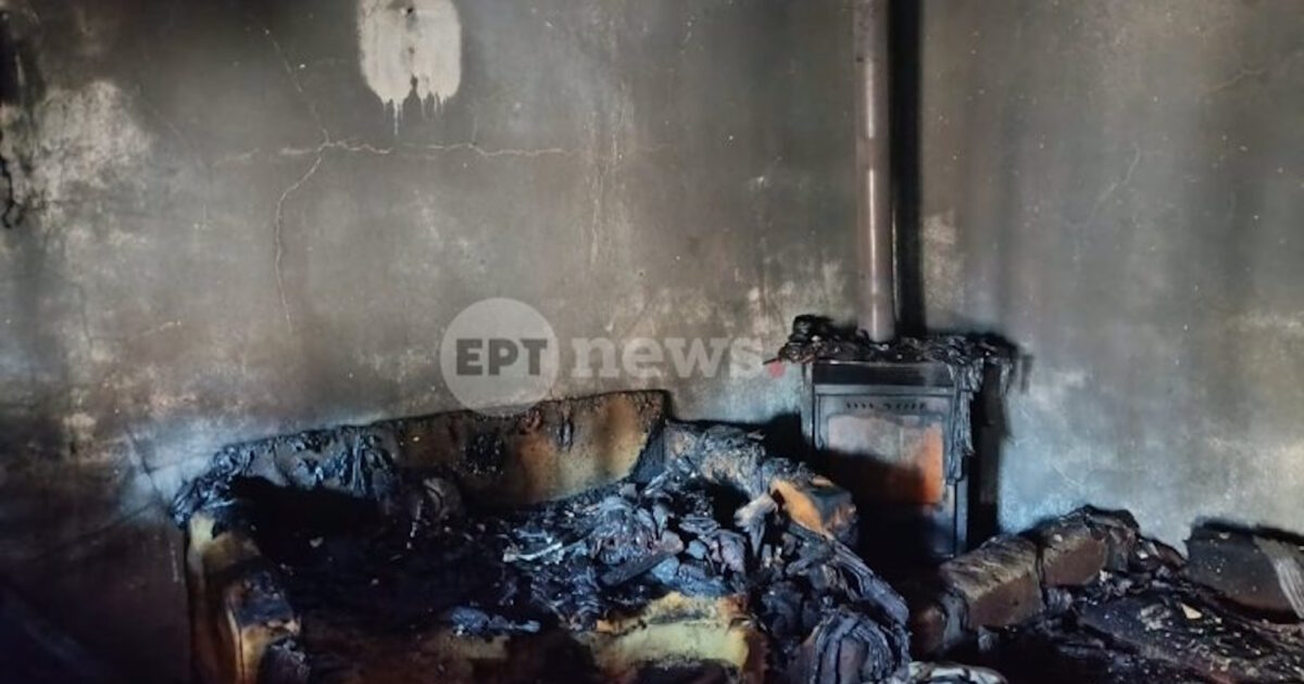 Η φωτιά φαίνεται πως ξεκίνησε από κάφτρα που πετάχτηκε από ξυλόσομπα με αποτέλεσμα όλο το σπίτι να γεμίσει με καπνούς.