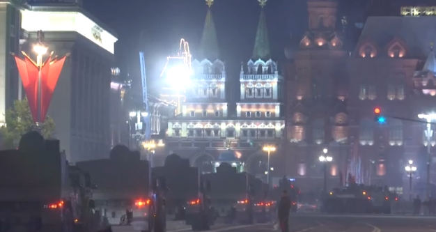 Στρατηγικοί πύραυλοι, που έχουν τη δυνατότητα να φέρουν πυρηνικές κεφαλές, έκαναν την εμφάνισή τους στην καρδιά της Μόσχας, στην πρώτη πρόβα της στρατιωτικής παρέλασης για την Ημέρα της Νίκης.