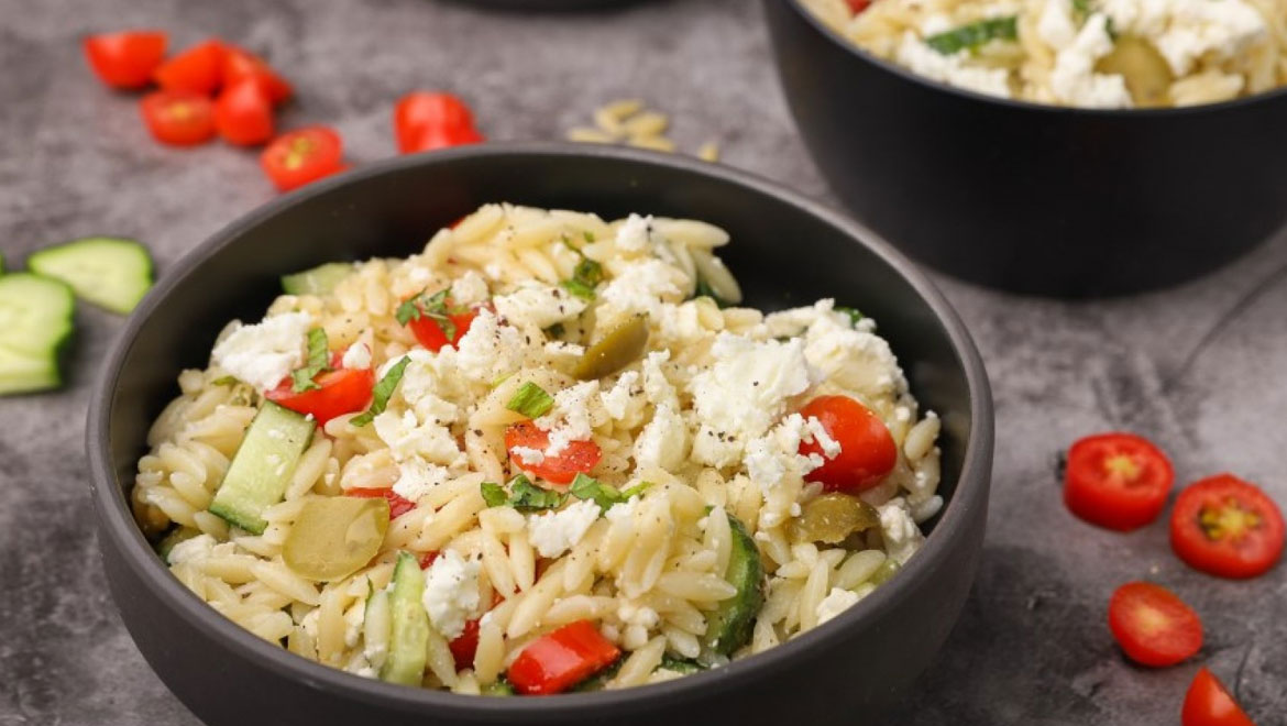 Τώρα που η θερμοκρασία ανεβαίνει, οι σαλάτες είναι η τέλεια λύση. Αν θέλεις μια χορταστική και ανάλαφρη θα συνδυάσεις το κριθαράκι με φέτα, ελιές και ντοματίνια.