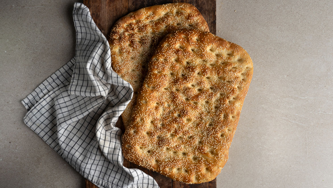 Αφράτη στο εσωτερικό, με ελαφρώς τραγανή κόρα και πλούσιο πασπάλισμα από σουσάμι και μαυροκούκι. Αυτή η σπιτική λαγάνα ετοιμάζεται σε μόλις 5 λεπτά, χρειάζεται όμως τον χρόνο της για να φουσκώσει σωστά και να αποκτήσει την τέλεια υφή.