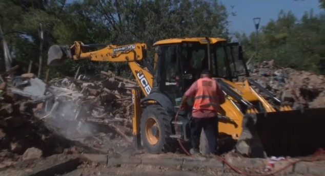 Συνεργεία του δήμου Αθηναίων κατεδαφίζουν παλιό κτίριο που έχει κριθεί επικίνδυνο για τη δημόσια ασφάλεια στην περιοχή των Ελληνορώσων στα σύνορα με το Πεντάγωνο.