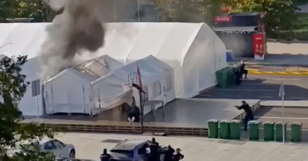 Afterwards, he set fire to a tent of supporters of President Aleksandar Vučić and threw a… pic.twitter.com/c1WUIZnJTV— LW World News (@LW_WorldNews) October 22, 2025