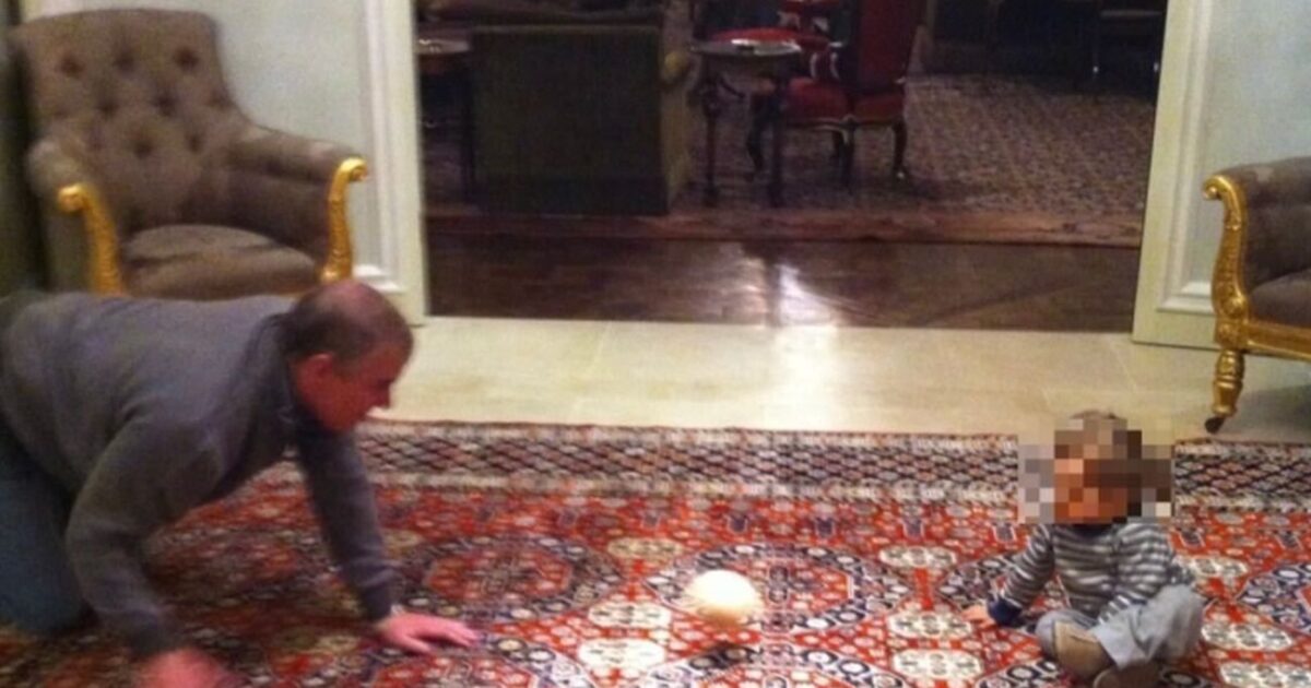Στις φωτογραφίες που τραβήχτηκαν το 2011, ο τότε πρίγκιπας Άντριου είναι σκυμμένος απέναντι από το μωρό σε ένα χαλί και κυλάει μια μπάλα που μοιάζει γυναικείο στήθος. Σύμφωνα με πηγές του TMZ, οι εικόνες τραβήχτηκαν μέσα στην ιδιωτική κατοικία του Άντριου στο Γουίνδσορ περίπου πριν από 15 χρόνια και δεν ήταν μόνος με το παιδί εκείνη την ώρα.